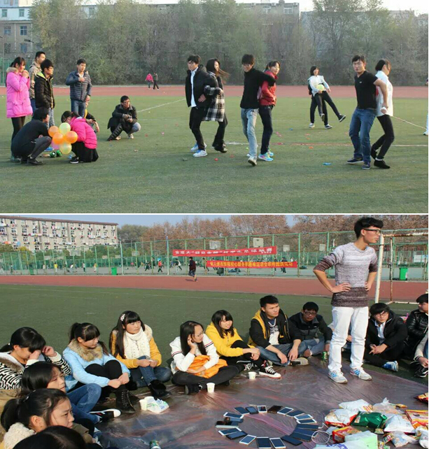 11月29日下午,为促进学生身心健康发展,号召学生放下手机,走向操场,制药15-2班团支部在北区操场开展了一次别开生面的趣味活动。