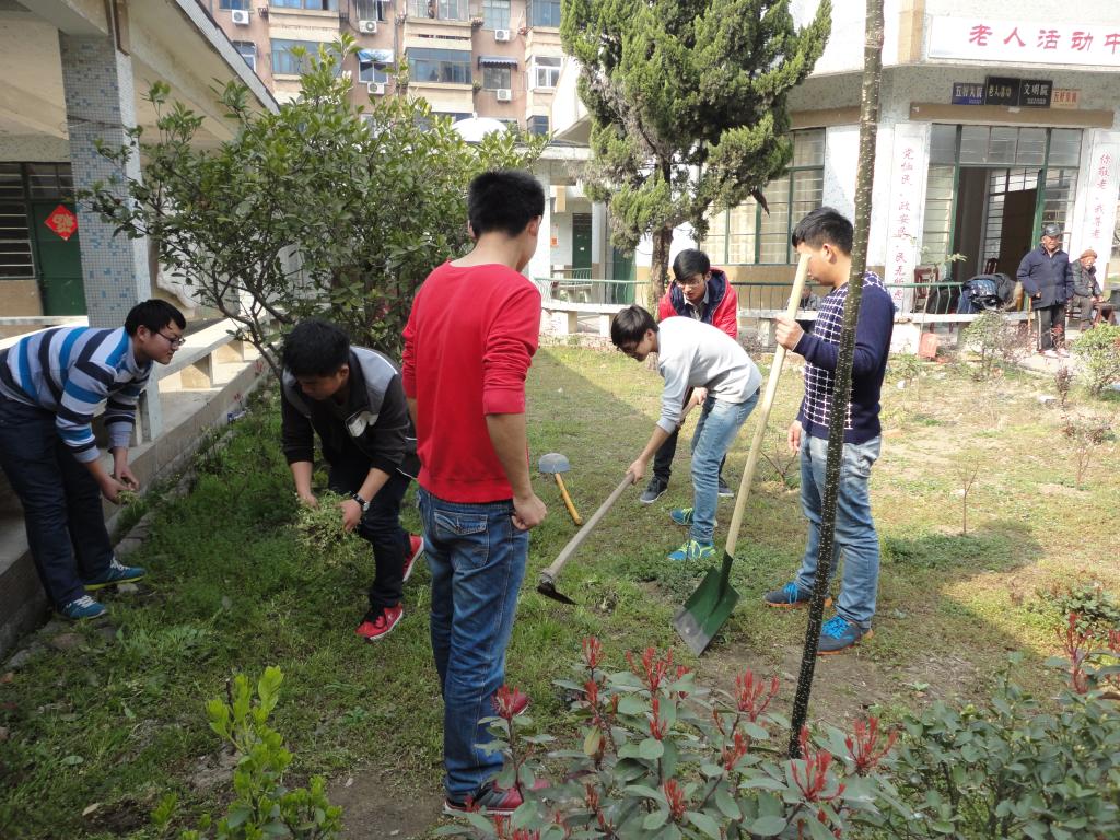 下午1点半,全班同学经过半小时的徒步到达舜耕敬老院。姚多玲院长热情接待了同学们。而后,同学们却不敢耽误片刻,在慰问过老人们的健康状况后,就马不停蹄的就忙开了。由于老人们年岁已高,行动不便,敬老院人手又少,工作量较大,团支书赵紫仪便号召同学们参与进来,减少工作人员的负担。同学们分工明确,有的拿抹布,拎水,帮助擦洗门窗;有的拿着扫帚,土簸箕,负责清扫院内垃圾;还有的扛起锄头铲子,帮助敬老院开垦荒地。没有工具的同学们也没有闲下来,干脆徒手去拔草,院长和老人们看见了都点头称赞,倍感欣慰。后来,同学们还在开垦好的菜地里撒下了预先买好的菜籽,有小青菜,大头青,香菜等等。近一下午的劳动之后,看到干净整洁的敬老院,同学们抹了抹额头上的汗水,长舒了一口气,这才放心的收起劳动工具,不舍的同老人们告别。