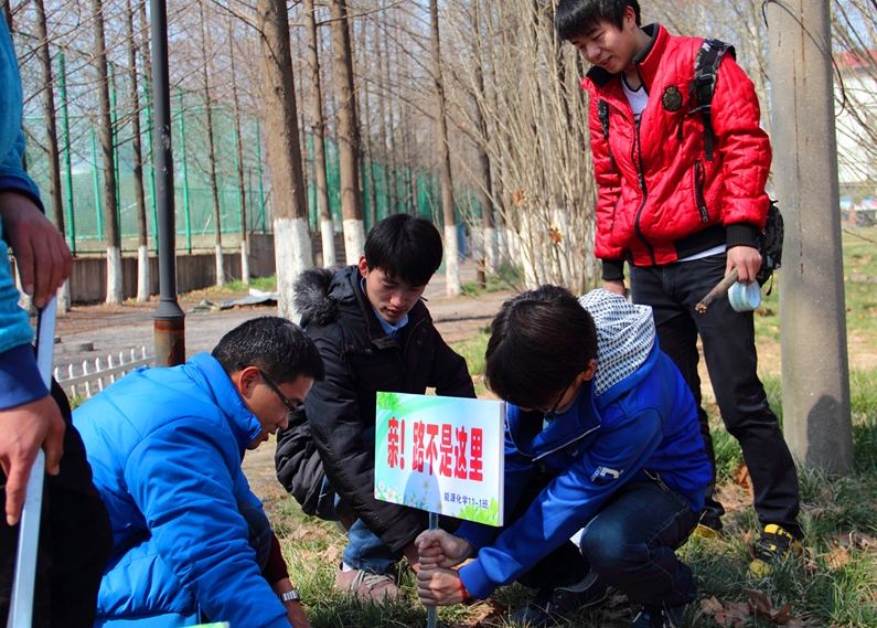 能化11-1班团支部开展“立环保标牌,护树苗草坪”志愿服务活动