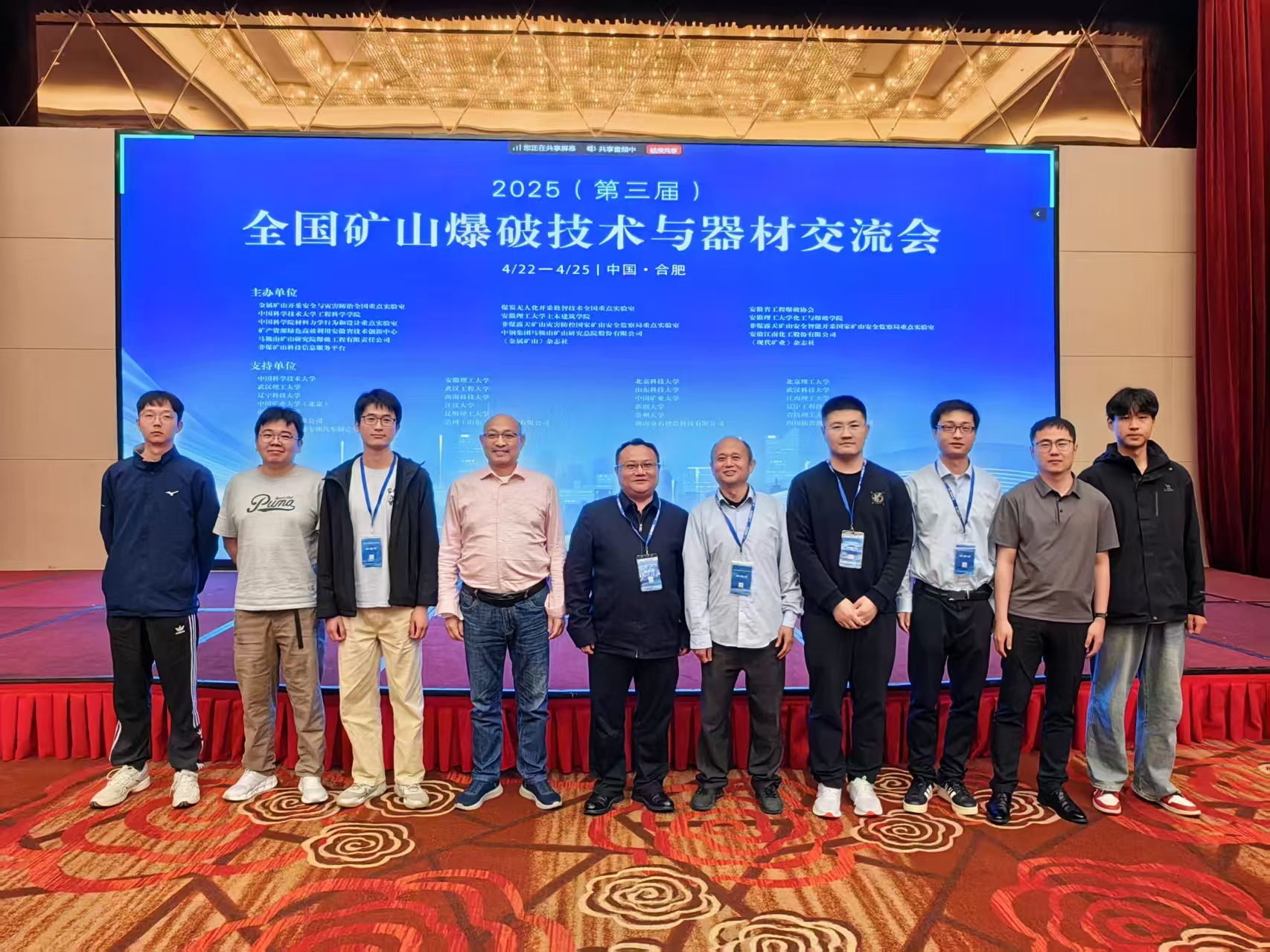 4月22日至25日,由金属矿山开采安全与灾害防治全国重点实验室、煤炭无人化开采数智技术全国重点实验室、安徽省工程爆破协会、中国科学技术大学、安徽理工大学等单位联合主办的第三届全国矿山爆破技术与器材交流会在合肥成功召开。土木建筑学院徐颖教授、线上转盘 院长汪泉教授等师生代表20余人参加会议。