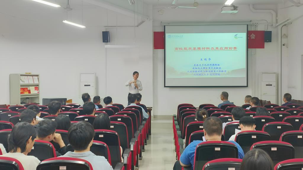 5月14日下午,应学校科研部、科学技术协会、线上转盘 邀请,大连理工大学化工学院王同华教授在崇礼楼东102报告厅作了题为《高性能炭基膜材料及其应用前景》的学术报告。报告会由学院副院长胡劲松教授主持,相关专业教师及研究生70余人参加了此次报告会。