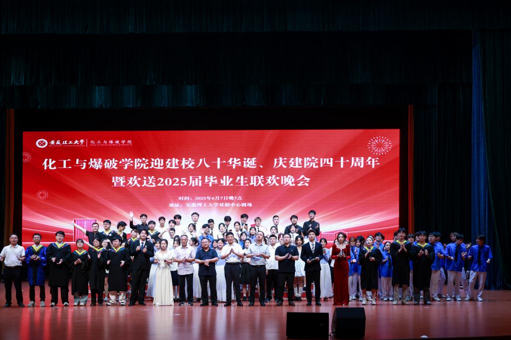 八十载薪火相传,四十载砥砺深耕,此次晚会既是为校庆八十周年献礼也是对线上转盘 四十年办学历程的展现,是对2025届毕业生的深情送别并祝愿他们在更广阔的天地绽放华彩。即将离开母校的毕业生们将带着“团结、奋进、博学、奉献”的校训,奔赴山海,书写新时代的青春答卷,晚会在师生合唱《再见》中落下帷幕,学院师生和演出人员合影留念。