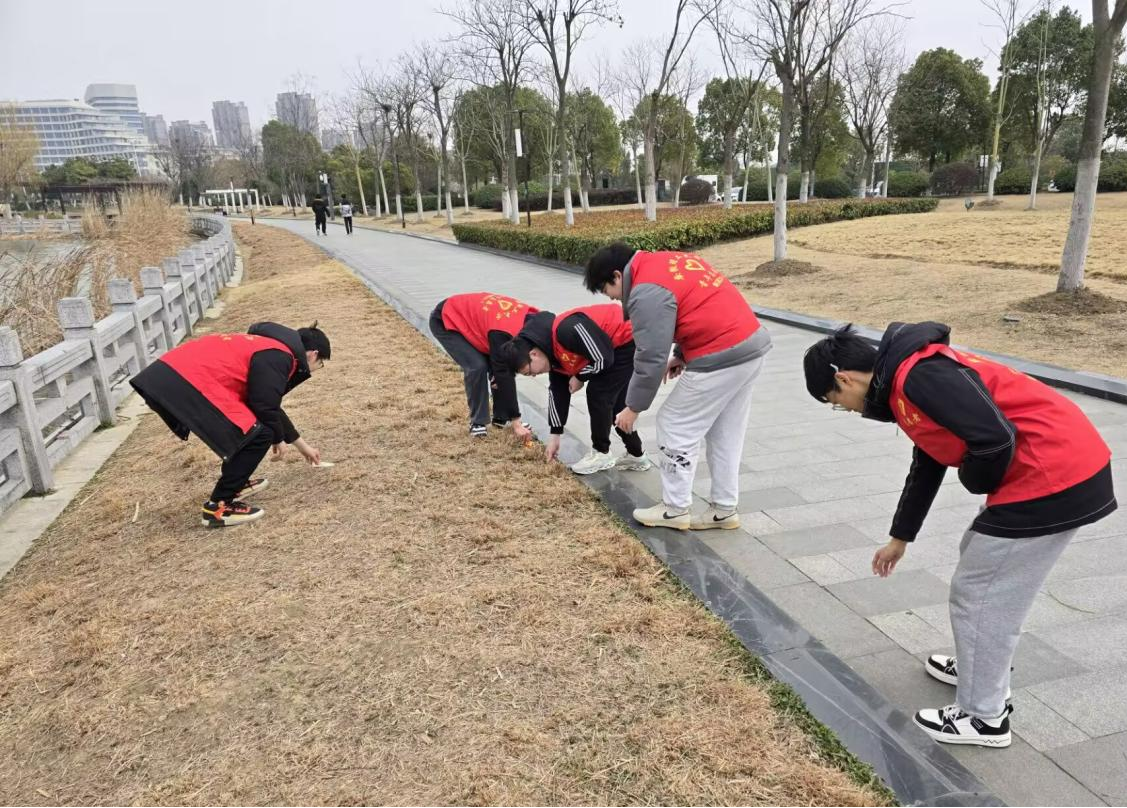 紧接着,在3月9日这一天,团支部又组织同学们走进人民公园,开展垃圾清理与回收志愿服务活动。志愿者们身穿统一的志愿服务马甲,手持垃圾袋与夹子,沿着林荫小道,在草坪与湖畔之间认真拾捡垃圾,并进行细致分类。他们的身影在春日的阳光下显得格外耀眼,仿佛为这片美丽的公园增添了一抹亮丽的色彩。