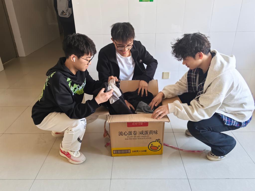 活动期间,同学们仔细挑选出不再穿着的衣物,认真清洗、精心整理并仔细打包。班委随后将这些满载着爱心与环保理念的衣物送至学校快递站,借助“飞蚂蚁”旧衣回收平台统一邮寄,让旧衣物开启新的旅程。